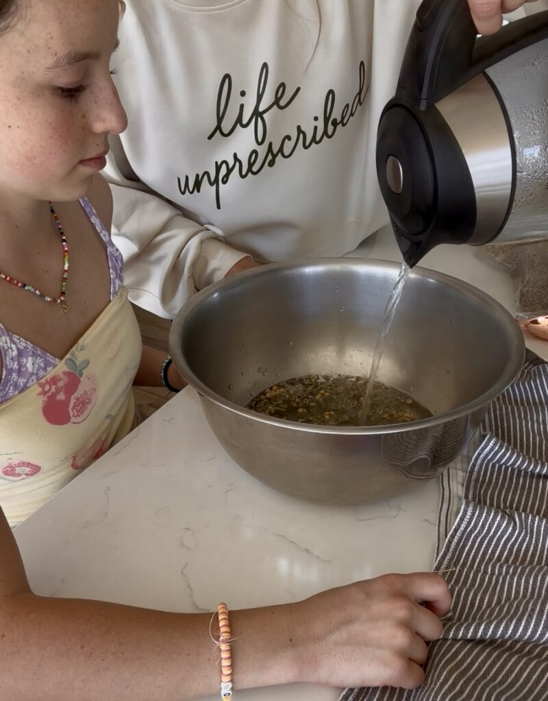 For little ones, I usually place the bowl nearby while they play or read, so they can breathe the herbal vapors safely without leaning directly over the steam.